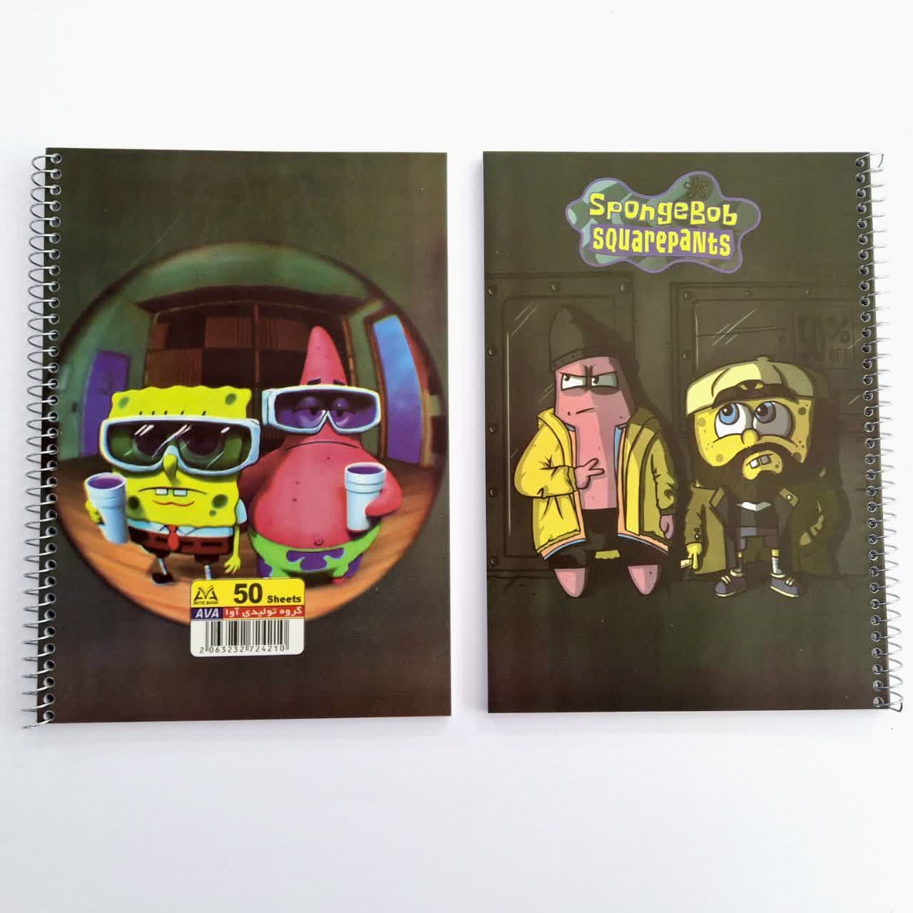 دفتر 50 برگ خط دار سیمی جلد طلقی مدل باب اسفنجی