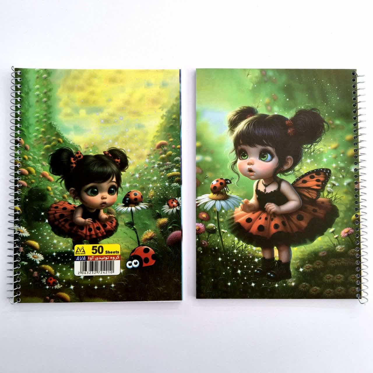 دفتر 50 برگ خط دار سیمی جلد طلقی مدل دختر و کفشدوزک